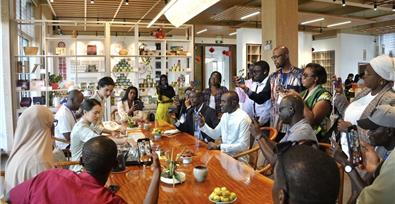 7月26日,大理州企業(yè)家協(xié)會(huì)會(huì)員單位——云南下關(guān)沱茶(集團(tuán))股份有限公司沱茶館內(nèi)茶香裊裊。來(lái)自萬(wàn)里之外的非洲塞內(nèi)加爾共和國(guó)新聞官員與記者研修班一行到訪下關(guān)沱茶集團(tuán)公司考察調(diào)研,一場(chǎng)跨越山海的茶文化交流在此溫情啟幕??疾靾F(tuán)抵達(dá)時(shí),沱茶館工作人員早已在門口熱情迎接。步入大廳,下關(guān)沱茶館負(fù)責(zé)人代表公司對(duì)遠(yuǎn)道而來(lái)的塞內(nèi)加爾友人致以熱烈歡迎。講解員首先指向大廳中央的品牌LOGO介紹道:“這枚形似傳統(tǒng)印章的標(biāo)志,承載著‘誠(chéng)信進(jìn)取’的企業(yè)核心價(jià)值觀,既是對(duì)社會(huì)發(fā)展的責(zé)任擔(dān)當(dāng),更是對(duì)全球消費(fèi)者的莊嚴(yán)承諾。”品牌logo背