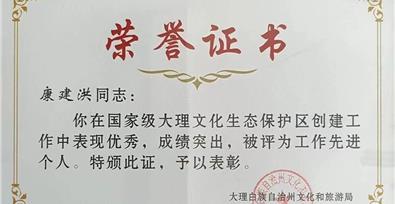 在國家級大理文化生態(tài)保護(hù)區(qū)創(chuàng)建10周年之際,為激勵全州非遺保護(hù)部門、非遺工作者、非遺繼承人不斷創(chuàng)新創(chuàng)造,為非遺事業(yè)做出更大的貢獻(xiàn),近日,大理州文化和旅游局大張旗鼓的表彰了一批在全州非遺工作中成績突出的先進(jìn)典型。大理州企業(yè)家協(xié)會理事單位——賓川縣康莊農(nóng)業(yè)生態(tài)觀光開發(fā)有限公司董事長康建洪榮獲“國家級大理文化生態(tài)保護(hù)區(qū)創(chuàng)建工作先進(jìn)個人”稱號受到表彰。康建洪于2008年1月在賓川縣仁和村創(chuàng)建了賓川古建真空磚瓦廠,他憑著對磚瓦事業(yè)的一份鐘愛,在改進(jìn)古建磚瓦燒制技術(shù)的同時,引進(jìn)了劍川木雕工藝人才,將木雕傳統(tǒng)工藝與傳統(tǒng)