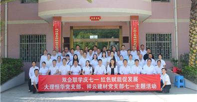 在中國共產(chǎn)黨成立104 周年之際,7月1日,大理州企業(yè)家協(xié)會副會長單位——大理恒華商貿(mào)有限責任公司黨支部與大理州企業(yè)家協(xié)會理事單位——祥云縣建材(集團)有限責任公司黨總支部,聯(lián)合開展“雙企聯(lián)學慶七一 紅色賦能促發(fā)展”主題黨日活動。通過參觀王復生、王德三紅色教育基地、開展黨建經(jīng)驗交流等,強化黨員理想信念,推動黨建與業(yè)務深度融合,凝聚企業(yè)高質(zhì)量發(fā)展合力。重溫入黨誓詞7月1日上午,在祥云縣劉廠鎮(zhèn)王家莊“紅色傳承”教育館前,面對鮮紅的黨旗,所有黨員整齊列隊、舉起右拳,重溫入黨誓詞。“我志愿加入中國共產(chǎn)黨.....