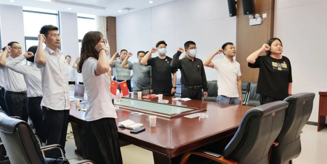 “我志愿加入中國(guó)共產(chǎn)黨,擁護(hù)黨的綱領(lǐng)……”與會(huì)全體黨員共同舉起右拳,面對(duì)黨旗莊嚴(yán)宣誓,鏗鏘有力的誓言表達(dá)了對(duì)黨的忠誠(chéng)、熱愛和聽黨話、跟黨走的堅(jiān)定決心。