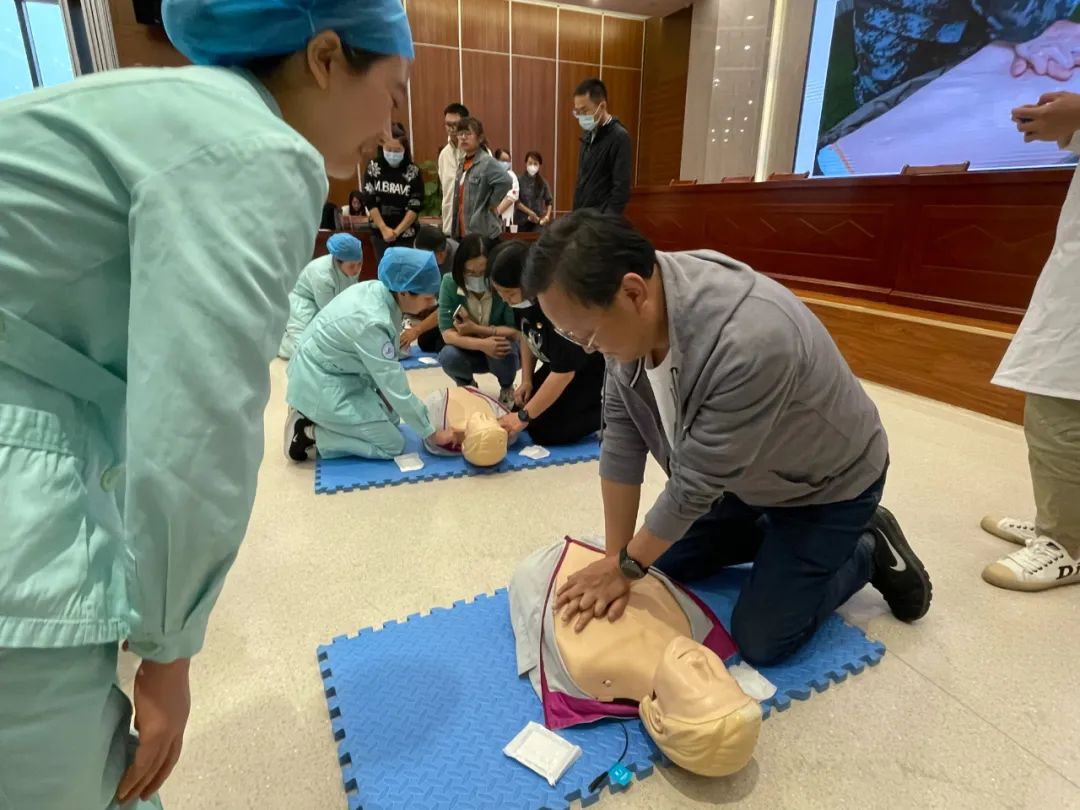 活動分三個階段進行,首先附屬醫(yī)院各相關科室醫(yī)師分別從ACS癥狀、體征及心臟病早期癥狀辨識、高血壓的防治、急性腦卒中識別與預防、創(chuàng)傷現場急救注意事項、心肺復蘇,海姆立克法等五個方面進行了培訓講解,并現場對各公司人員提出的問題進行了解答。