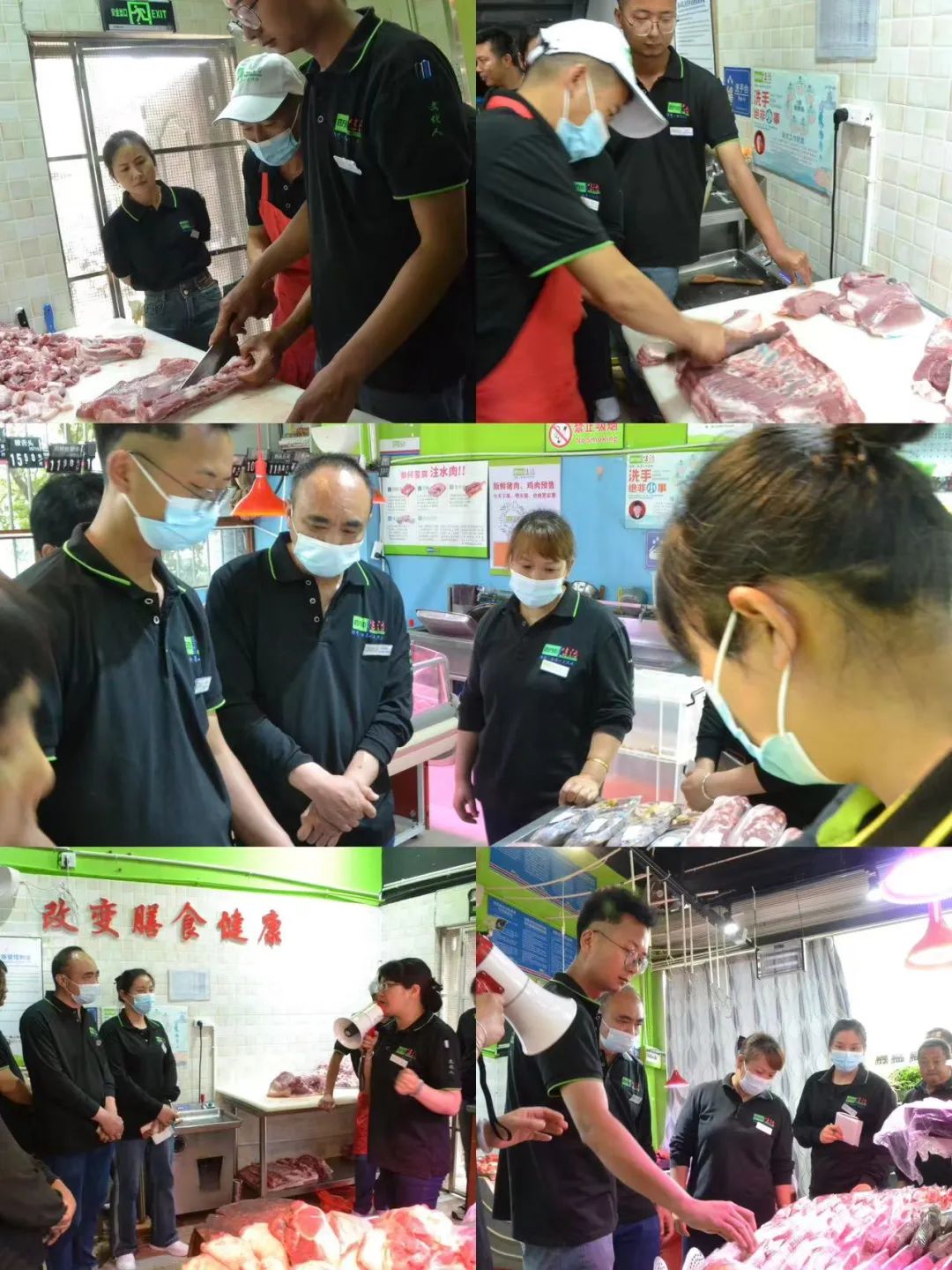最后,由巍山旗艦店生鮮柜長華海春為大家分享交流精肉銷售技巧、損耗控制以及金平肉制作的流程及晚市肉課推廣,贏得了所有人的贊譽。