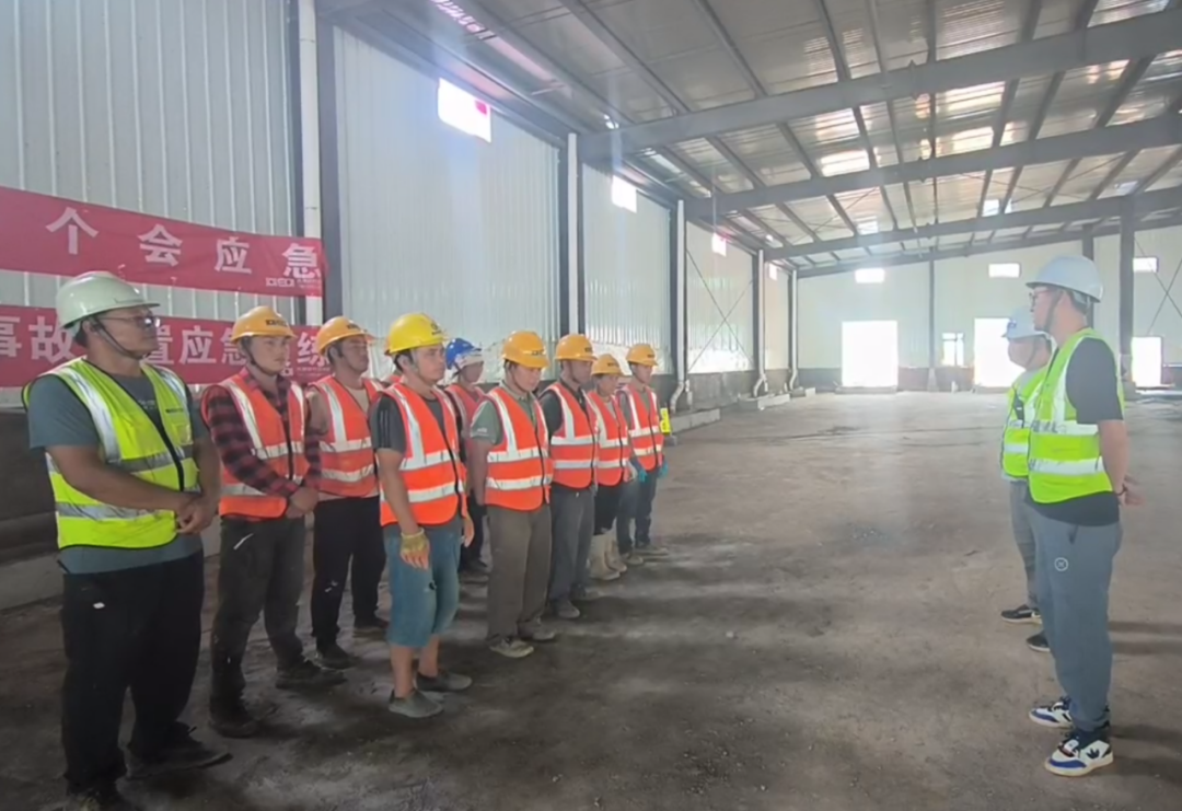 演練過程中,項目部安全負責人針對火勢過大的逃生演練作了以下措施:①詳細講解了廊體內部火災引起的危害和如何用正確的方法自我防護、互救、及時逃離事故現(xiàn)場。②由項目部管理人員對施工作業(yè)人員進行一次逃生演練觀摩學習后,再由施工作業(yè)人員進行逃生演練。③演練結束后,項目部以隨機抽查的形式抽出6名施工作業(yè)人員再次進行實戰(zhàn)演練,確保施工作業(yè)人員能夠真正熟練掌握應急救援手段,讓全體員工時刻牢記安全生產崗位責任,熟悉安全逃生出口,同時增強全體員工的防火意識和增強滅火逃生能力,達到了培訓演練的目的。