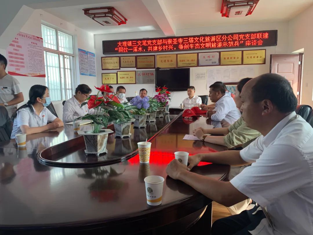 為學(xué)習(xí)貫徹習(xí)近平新時代中國特色社會主義思想,積極響應(yīng)習(xí)總書記“綠水青山就是金山銀山”的號召,根據(jù)大理市委“同心圓城市基層黨建綜合體活動計劃”,“聚力蒼洱黨建綜合體活動計劃”統(tǒng)一安排,以轄區(qū)黨組織結(jié)對共建機(jī)制為依托,大理州企業(yè)家協(xié)會副會長單位——大理旅游集團(tuán)下屬的崇圣寺三塔文化旅游區(qū)分公司黨支部與大理鎮(zhèn)三文筆黨支部于6月29日聯(lián)合開展“同飲一溪水,共建鄉(xiāng)村興、爭創(chuàng)文明旅游示范兵”支部共建活動。