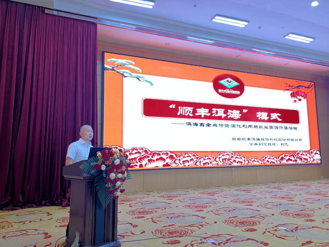 云南順豐洱海環(huán)保科技股份有限公司常務(wù)副總經(jīng)理劉飛就企業(yè)在洱海流域畜禽糞污資源化利用與農(nóng)業(yè)面源污染治理情況以及企業(yè)總結(jié)集成的洱海流域有機廢棄物資源化綜合利用的全產(chǎn)業(yè)鏈“順豐洱海”模式作專題匯報與分享。