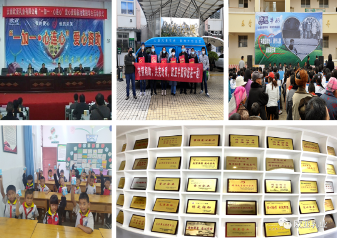 在發(fā)展自身的同時(shí),歐亞乳業(yè)始終不忘社會(huì)哺育之恩,將“感恩”“責(zé)任”“奉獻(xiàn)”視為企業(yè)文化的精神內(nèi)核和企業(yè)行為的基本準(zhǔn)則。投產(chǎn)以來,公司帶動(dòng)2萬余農(nóng)戶增收致富,在脫貧攻堅(jiān)活動(dòng)中,更是結(jié)合自身實(shí)際,承擔(dān)社會(huì)責(zé)任,制定措施,提供技術(shù),直接幫扶帶動(dòng)大理州內(nèi)各縣市建檔立卡貧困戶594戶2299人脫貧致富,因聯(lián)農(nóng)帶農(nóng)效果顯著,公司所有產(chǎn)品均被選入《全國扶貧產(chǎn)品目錄》;在公益事業(yè)方面,主要通過捐資捐物助推貧困地區(qū)教育事業(yè)發(fā)展,勉勵(lì)學(xué)子奮發(fā)圖強(qiáng),勇敢逐夢。新冠疫情爆發(fā)之際,公司在緊抓復(fù)工復(fù)產(chǎn),保障優(yōu)質(zhì)乳品充足供應(yīng)的同時(shí),主動(dòng)向武漢、上海等疫情嚴(yán)重地區(qū)以及一線防疫工作者捐贈(zèng)牛奶、酒精等物資,積極融入疫情防控大局;在抗震、抗旱、消防救火等方面,公司也竭盡所能提供幫助,以切實(shí)行動(dòng)踐行初心使命,展現(xiàn)擔(dān)當(dāng)作為,多年來,共向社會(huì)捐款捐物近兩千萬元。公司長期堅(jiān)守公益初心,被大理州扶貧開發(fā)領(lǐng)導(dǎo)小組評為“扶貧濟(jì)困 愛心企業(yè)”,被大理州扶貧辦評為“扶貧助學(xué)愛心企業(yè)”,被大理州工商聯(lián)、大理州光彩事業(yè)促進(jìn)會(huì)評為“光彩事業(yè)先進(jìn)單位”。