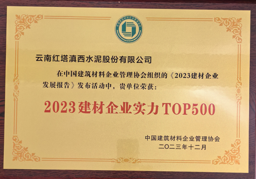 云南紅塔滇西水泥榮登2023中國建材企業(yè)500強(qiáng)