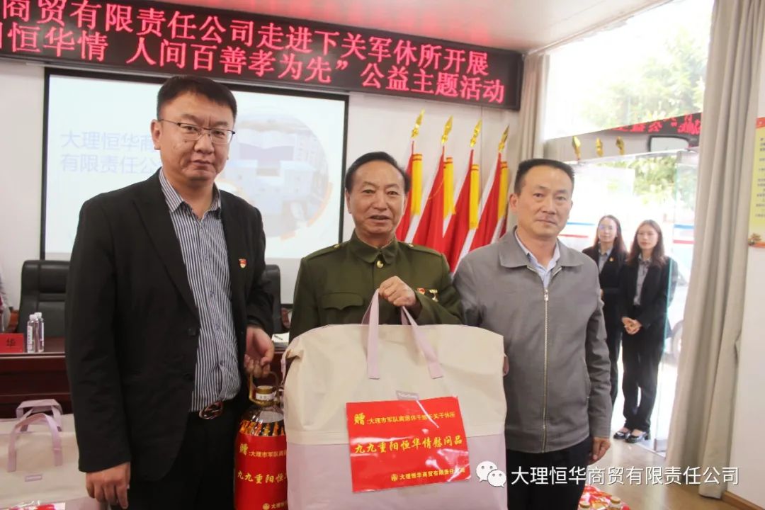 當(dāng)天下午,公司在大理市退役軍人事務(wù)局的關(guān)注引導(dǎo)下走進(jìn)下關(guān)軍休所,在一片祥和的氛圍里,慰問(wèn)40余人離退休老軍人、抗美援朝英雄、解放戰(zhàn)爭(zhēng)英雄、兩山戰(zhàn)役等其他戰(zhàn)役英雄及已故離休軍人遺屬,共敘軍民魚(yú)水情。雖然他們都已年邁,但非公企業(yè)在開(kāi)展社會(huì)公益活動(dòng)中,沒(méi)有忘記革命老前輩們?yōu)樯鐣?huì)為國(guó)家所做的貢獻(xiàn),點(diǎn)點(diǎn)滴滴皆令人敬仰,帶著致敬、尊重的情懷,共同度過(guò)了美好、歡樂(lè)和難忘的重陽(yáng)節(jié)。