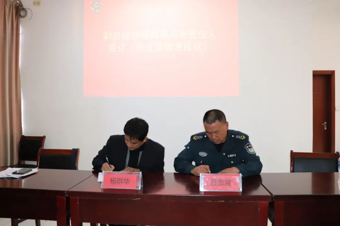 隨后,公司負(fù)責(zé)人與各大(中)隊(duì)責(zé)任人簽訂2024年度《槍支使用管理授權(quán)書》《槍支管理責(zé)任狀》《駕駛員安全責(zé)任狀》。