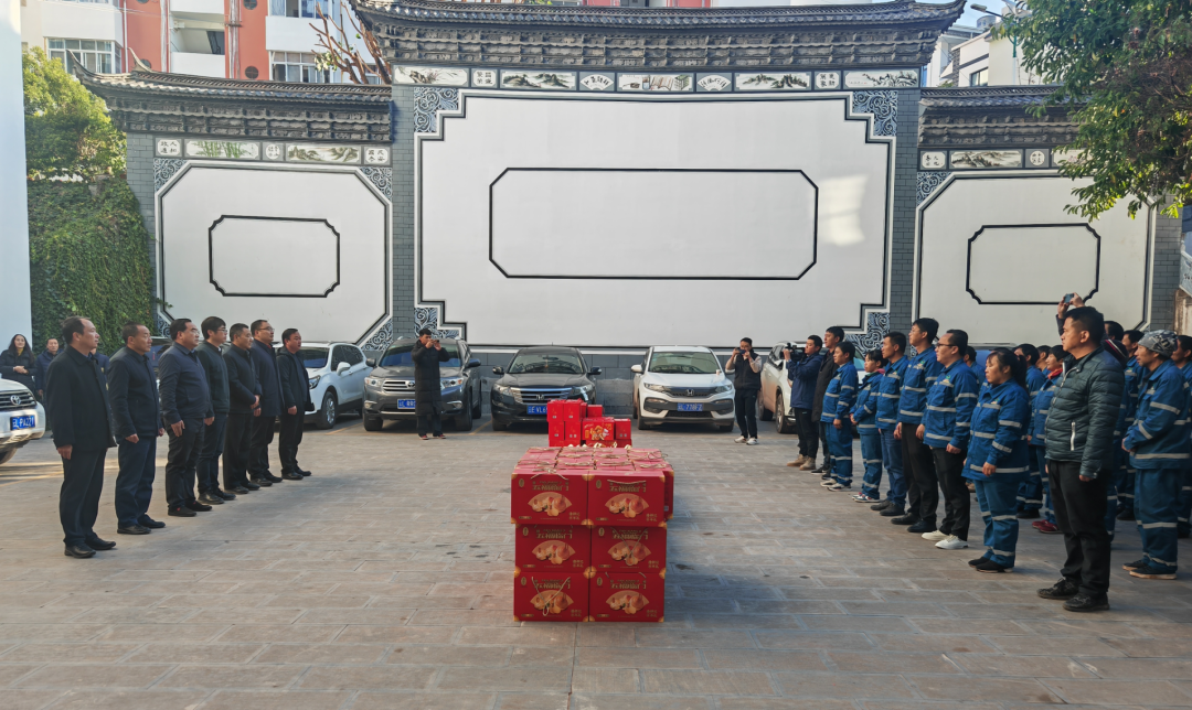 云龍縣四班子領(lǐng)導(dǎo)與公司職工代表親切握手,深入交談。在慰問活動過程中,縣委、縣政府對一線環(huán)衛(wèi)工人的辛勤付出給予了充分的肯定和高度的贊揚,并向全體職工送來了溫暖和關(guān)懷以及新春的祝福。