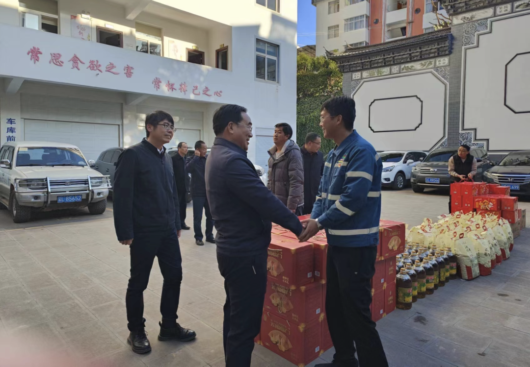 1月18日,云龍縣委書記任敏、縣委副書記、縣長白慶武、縣人大主任張伯川、縣政協(xié)主席李俊剛、縣人民政府常務(wù)副縣長楊紫江、縣委常委、縣委辦主任段躍紅、縣人民政府副縣長黎云松戲班子領(lǐng)導(dǎo)組成的一行到大理州企業(yè)家協(xié)會常務(wù)副會長單位——順豐洱海環(huán)保下屬企業(yè)云龍縣順豐洱海環(huán)??萍加邢挢熑喂鹃_展2024年春節(jié)送溫暖慰問活動。