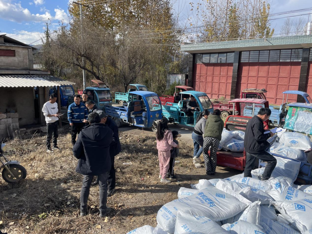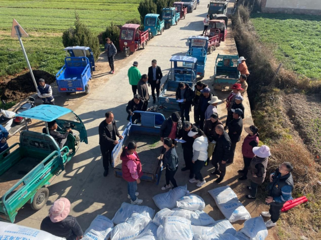 在肥料發(fā)放現(xiàn)場,公司農(nóng)化人員與采購方、村委會人員一同對到貨的產(chǎn)品進行現(xiàn)場抽樣、封存,并寄送至有檢測資質的單位進行各項技術指標的檢驗。