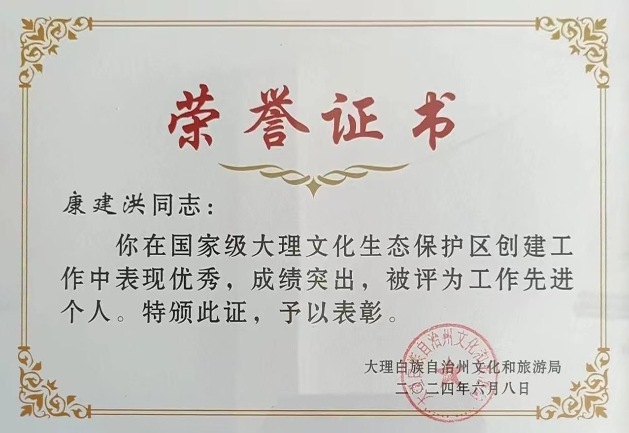 康建洪獲“國家級大理生態(tài)文化保護區(qū)創(chuàng)建工作先進個人”稱號