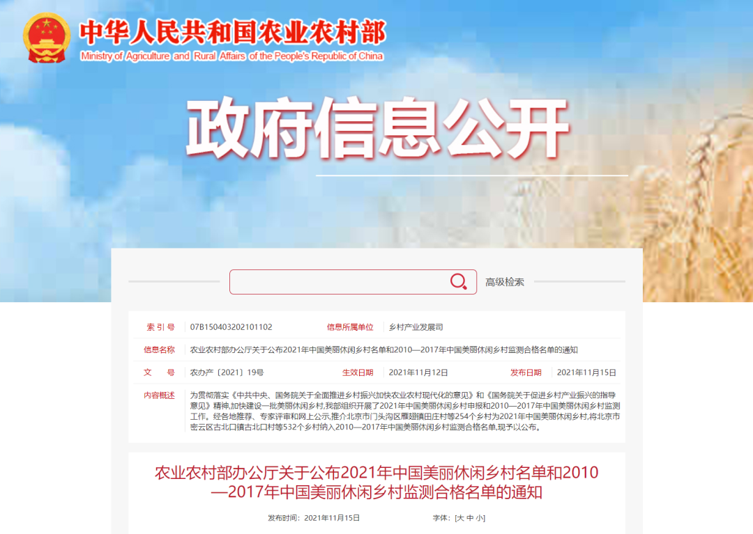 2021年中國(guó)美麗休閑鄉(xiāng)村名單 |