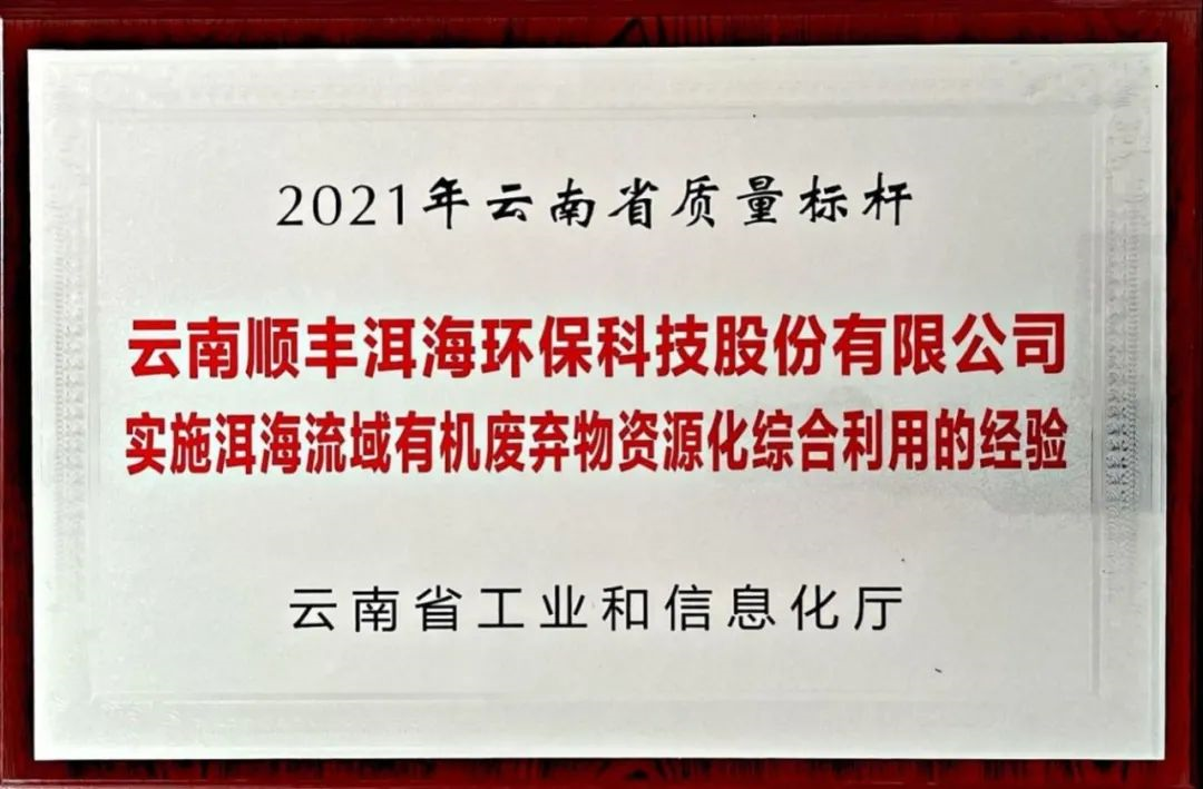 順豐洱海環(huán)保公司榮獲“2021年云南省質(zhì)量標(biāo)桿殊榮”