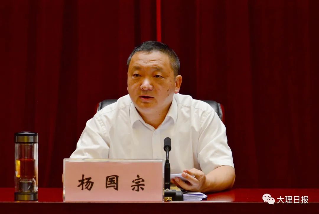 州委書記楊國宗講話。州人大常委會(huì)主任張劍萍、州政協(xié)主席朱建斌出席會(huì)議。