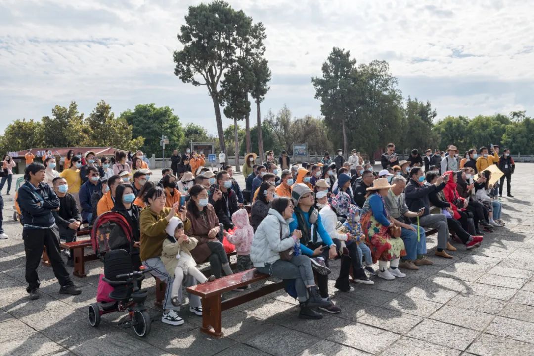 精彩不斷的演出吸引住了前來景區(qū)游覽的客人駐足觀看,連景區(qū)附近的各民族老百姓都聞聲而來,歡歡喜喜看演出,熱烈的掌聲和喝彩聲此起彼伏。