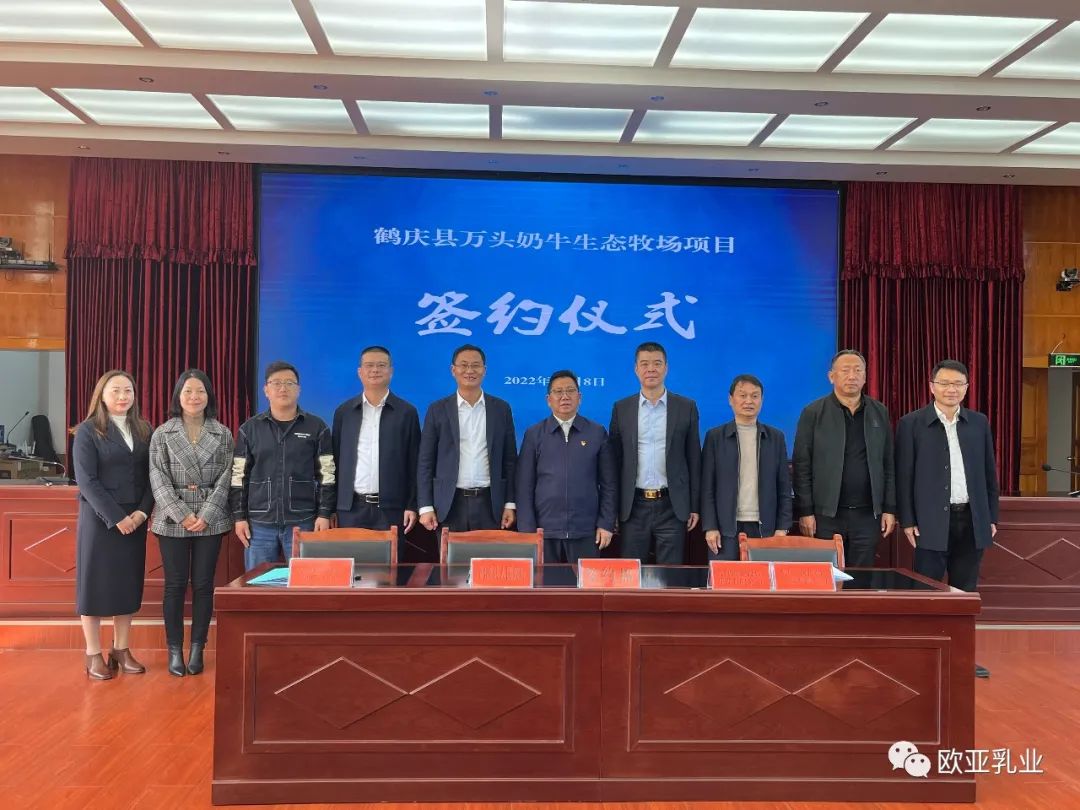 為加快綠色奶源基地建設(shè),提高優(yōu)質(zhì)原料奶供應(yīng)量,大理州企業(yè)家協(xié)會(huì)理事單位——云南歐亞乳業(yè)有限公司繼2015年在鶴慶縣金墩鄉(xiāng)北溪村投資建設(shè)萬頭國家級(jí)奶牛標(biāo)準(zhǔn)化示范場后,11月8日,又與鶴慶縣政府簽定投資協(xié)議,新建一個(gè)存欄11000頭娟姍奶牛的有機(jī)生態(tài)牧場。大理州政府黨組成員、一級(jí)巡視員吉向陽,鶴慶縣四班子領(lǐng)導(dǎo),縣級(jí)相關(guān)部門負(fù)責(zé)人等領(lǐng)導(dǎo)出席儀式,歐亞乳業(yè)公司董事長彭金國及管理人員參加儀式。