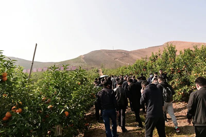 考察賓川縣云福農(nóng)副產(chǎn)品加工有限責(zé)任公司萬畝柑桔示范園時,在公司負責(zé)人的引領(lǐng)下,大家參觀了種植園,并聽取了對整個種植園的規(guī)模、布局、基地的亮點配套設(shè)施及生產(chǎn)管理經(jīng)驗的詳細介紹。