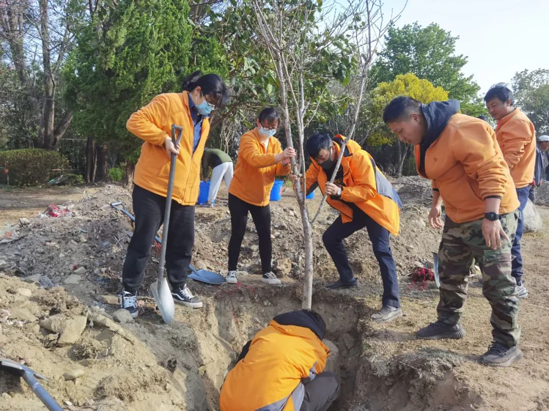 植樹現(xiàn)場,大家手拿鐵鏟、鋤頭、水桶等植樹工具,熱情高漲,干勁十足。各個小組分工協(xié)作,有的挖坑、有的運(yùn)樹、有的鏟土、有的澆水。大家滿懷熱情,揮動鐵鍬,相互協(xié)作,移苗、培土、澆水......各個環(huán)節(jié)銜接有序,每道工序都做到一絲不茍,栽下一株株樹苗,植下一塊塊新綠。