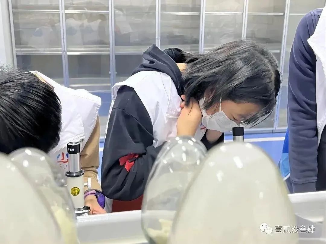 孩子們懷著心中最大的疑問(wèn)來(lái)到了研發(fā)技術(shù)中心,在專(zhuān)業(yè)技術(shù)人員的帶領(lǐng)講解下,孩子們不僅看到了“酸奶的靈魂”——菌種真實(shí)的樣子,還了解了菌種的多樣性。隨后,孩子們?cè)诩夹g(shù)人員的教導(dǎo)下,學(xué)習(xí)了如何使用顯微鏡及制作樣本,還通過(guò)顯微鏡觀察了菌種及其他植物細(xì)胞的結(jié)構(gòu),在觀察過(guò)程中,經(jīng)常能聽(tīng)到孩子們一邊喊著“哇塞,我看到了,快來(lái)看,好神奇?。?rdquo;一邊招呼自己的小伙伴一同觀看,分享這份喜悅。