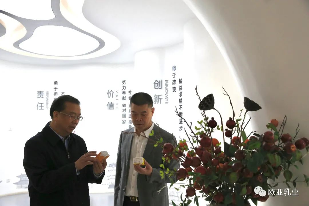 在產(chǎn)品展廳,劉主席一行對(duì)歐亞乳業(yè)綠色、有機(jī)的多元化系列產(chǎn)品給予了充分的肯定,他強(qiáng)調(diào),要踏踏實(shí)實(shí)辦好企業(yè),帶動(dòng)更多的貧困群眾共奔小康,促進(jìn)創(chuàng)新、增加就業(yè)、改善民生。