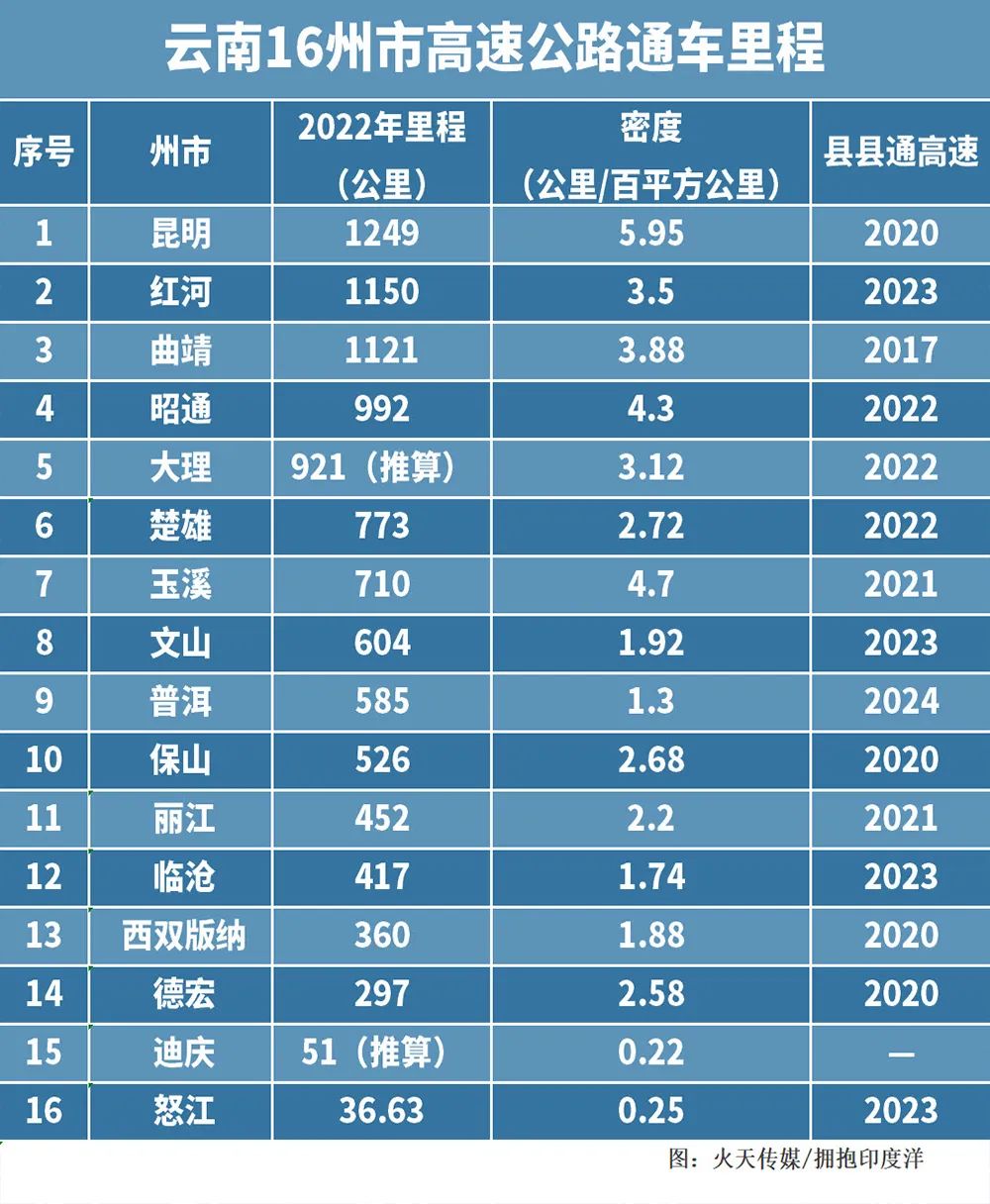 云南16州市高速公路里程:三州市比肩北上廣,紅河曲靖爭第二,大理昭通進步快