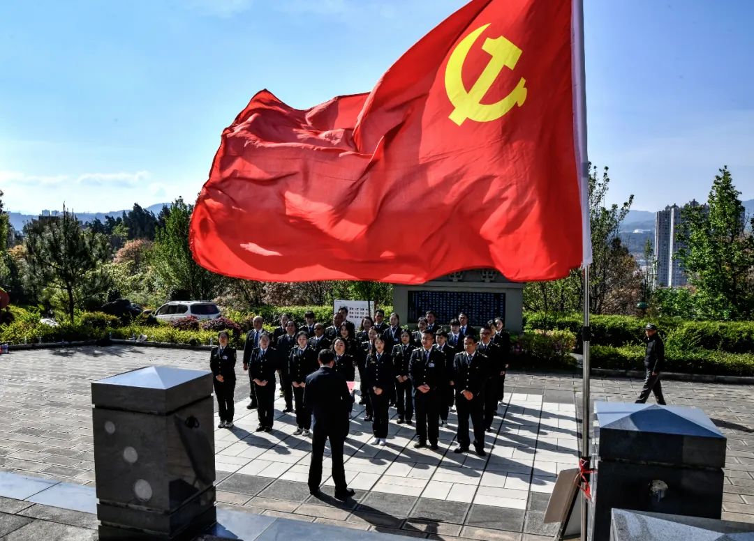 參加活動(dòng)的黨員、團(tuán)員和職工代表在洱海公園大理人民英雄紀(jì)念廣場(chǎng)為革命先烈們默哀和敬獻(xiàn)鮮花,深刻悼念為了民族的解放事業(yè)和國(guó)家的和平統(tǒng)一而犧牲的人民英雄,緬懷他們的豐功偉績(jī)。洱海游船分公司黨支部書記楊志勇帶領(lǐng)全體黨員重溫了入黨誓詞,面對(duì)鮮紅的黨旗,黨員們鏗鏘有力的聲音響徹在人民英雄紀(jì)念廣場(chǎng)上空,錚錚誓詞,是對(duì)自己初心使命的檢驗(yàn),更是對(duì)人民英雄們的承諾。