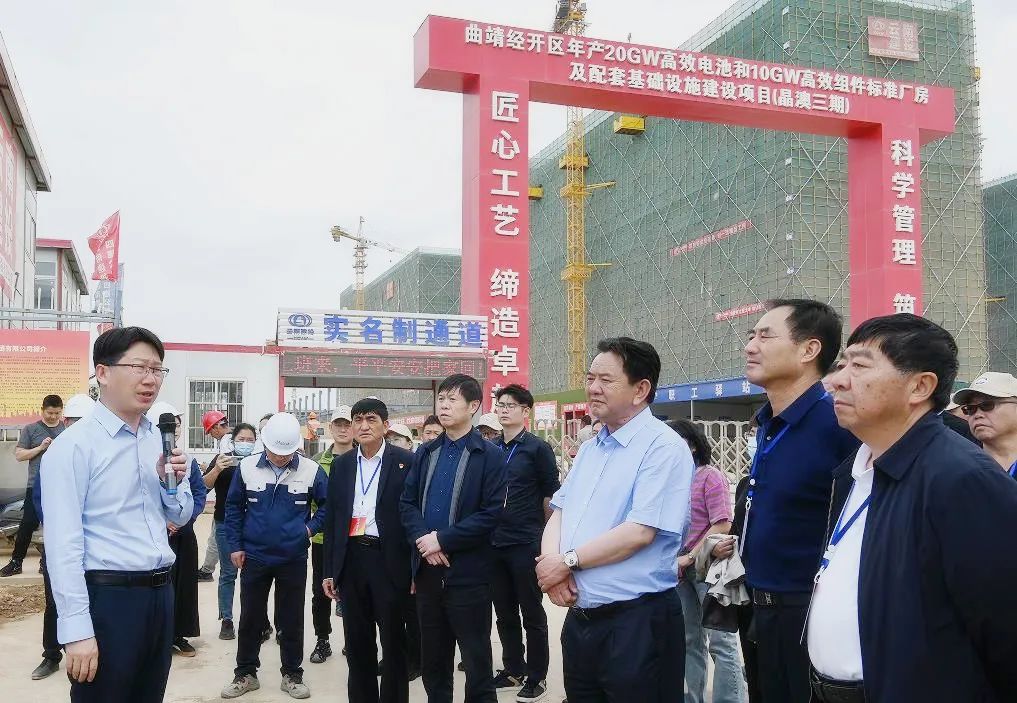 隨后到曲靖經開區(qū)南海子產業(yè)園,調研了晶澳科技投資建設的年產10GW高效電池和5GW高效組件項目(晶澳三期)、江蘇潤陽年產13GWN型高效太陽能電池片項目、曲靖陽光年產20GW單晶硅棒及10GW切片項目(陽光三期)、億緯鋰能年產23GWh圓柱磷酸鐵鋰儲能動力電池項目在建情況和晶澳科技二期年產20GW單晶硅棒及切片項目現場。